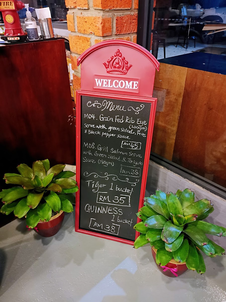The menu features a variety of offerings suitable for casual dining, including a selection of Western and local Sabahan dishes. Visitors can expect categories such as mains, light bites, and beverages. The food options encompass grilled items like Angus Striploin, as well as local specialties including Nasi Lalap.